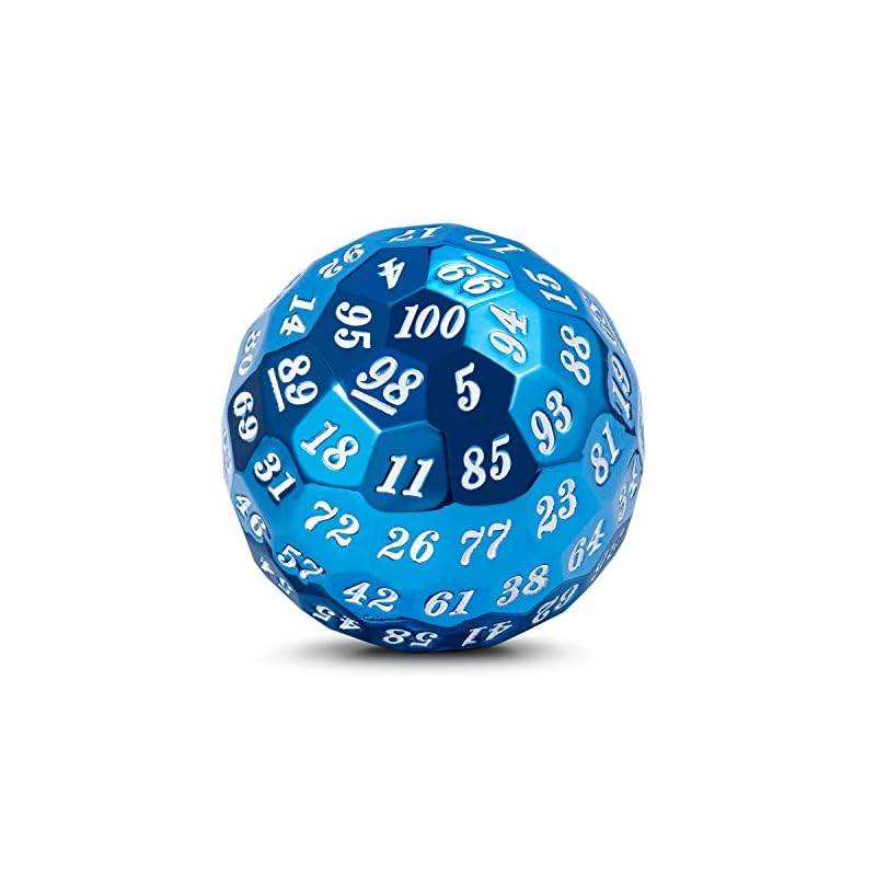 D100 Dice Glitter Blue DNDND 100 Sided Die with Translucent Pouch for Dungeons and Dragons(Chameleon Blue with White Number)