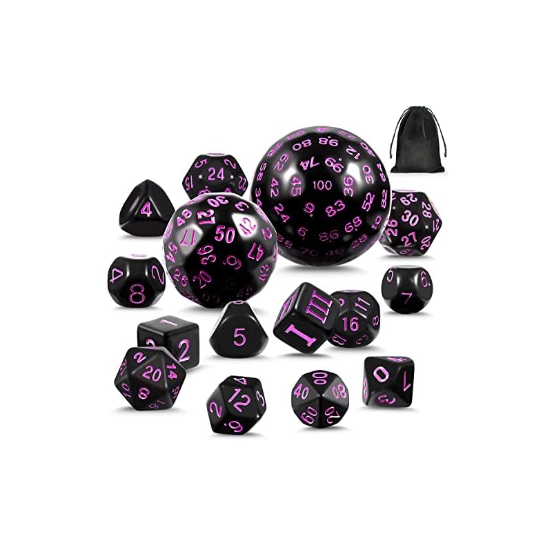 DNDND D100 Dice Set 15 Pieces Polyhedral DND Dice with Velvet Pouch for Role Playing Game(Black with White Number)