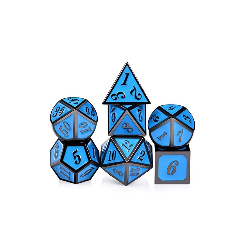 DnDnD Blue D&D Metal Dice, 7PCS Polyhedral Dice with Metal Tin for DND Table Games Roll Palying Game