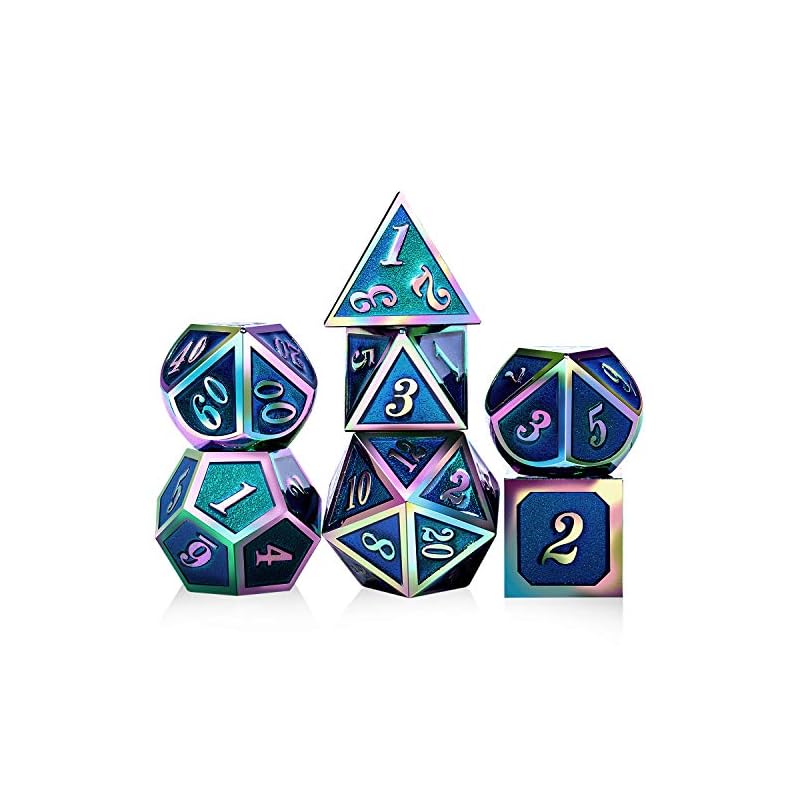 DNDND D&D Dice 7pcs Metal Polyhedarl Rainbow DND Dice Set with Metal Box for RPGs Dungeons and Dragons Board Game (Blue and Colorful Number)