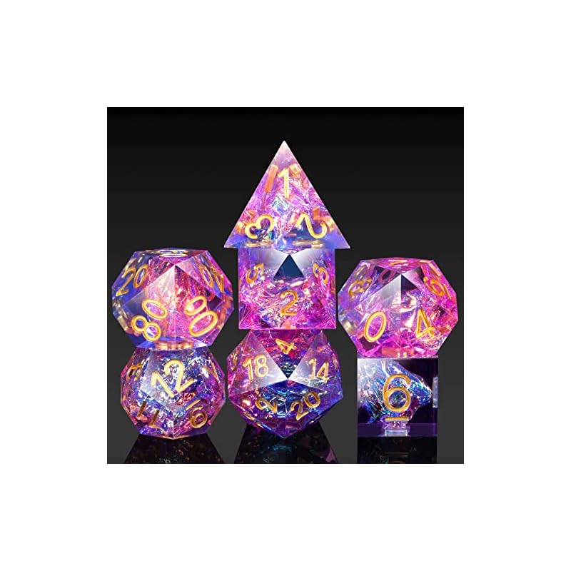 DNDND Sharp DND Dice, Handmade Resin Sharp Edge 7 Piece Die with Gift Case for Dungeons and Dragon Tabletop Games (Flower)