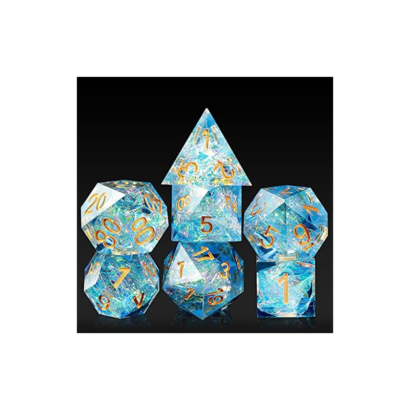 Dice Set D&D,DNDND Handmade Sharp Edge 7 Die with Gift Dice Case for DND Dungeons and Dragon Game (Azuren with Gold Number)